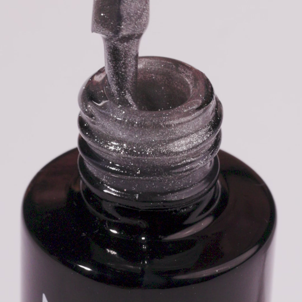 Glacial Grey is a UV gel polish infused with shiny grey particles, inspired by the sparkle of icy crystals. It delivers an elegant shimmer and allows you to create a deep Cat Eye effect that’s perfect for the winter season. With full coverage, it enhances the nail shape and brings a frosty charm to your manicure.