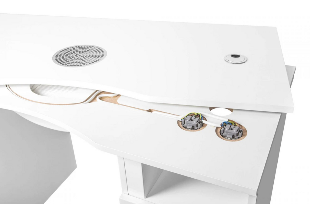 The efficiency of the Afinia dust collector is mainly due to its powerful suction force. In the latest desk model, we have solved the issue of air extraction that previously flowed out forcefully after dust was trapped in the filter. Special air ducts minimise the “wind” effect and direct air outside the desk. We also offer a special solution — an interchangeable tabletop: whenever the surface wears out and you want it to shine again, it can be easily replaced.