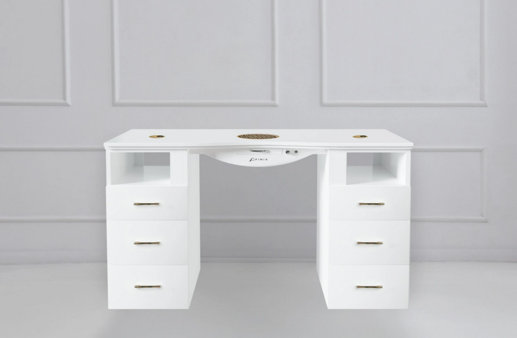 - Left cabinet: 3 drawers, right cabinet: 3 drawers