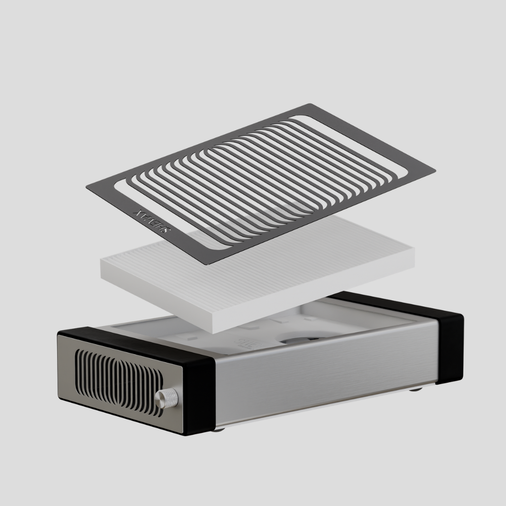 The horizontal STYLE PRO SHEMAX dust collector efficiently captures dust, preventing it from spreading in the air or settling on surfaces. The collected dust is compressed and securely locked inside the filter.