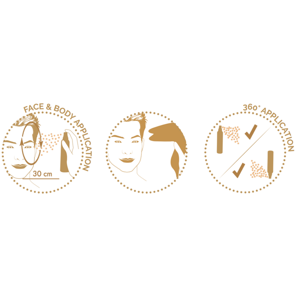 2. Spray quickly and evenly from a distance of about 20 cm from the skin. The spray does not require additional rubbing in with a self-tanning glove. Those who are used to rubbing in their self-tanning product with a glove can apply the product to it and then apply it to the skin.