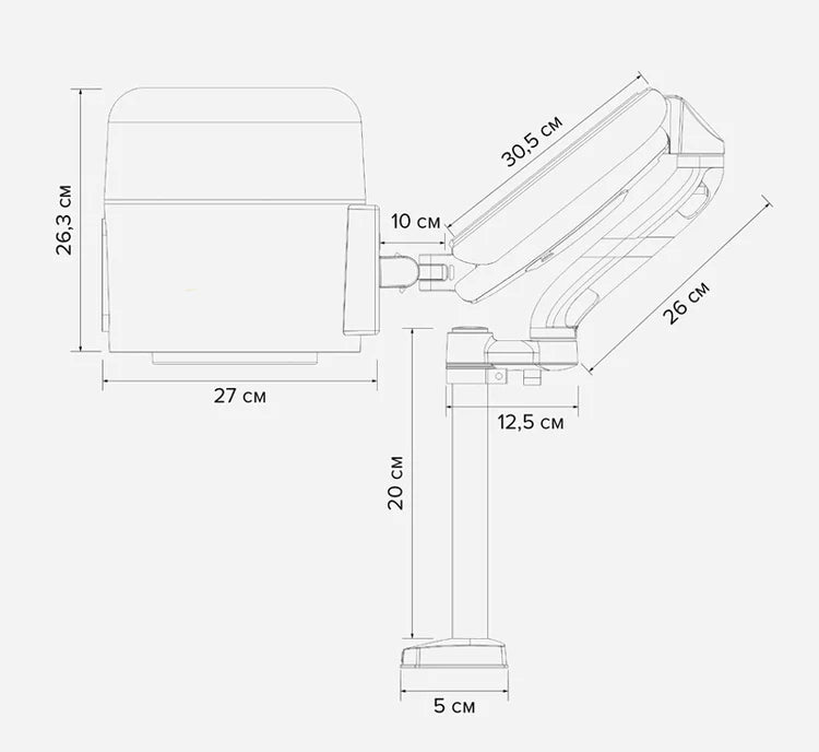 - Galda stiprinājums, šarnīrsavienojuma svira, ritošais statīvs: oglekļa tērauds ar ABS plastmasas elementiem.