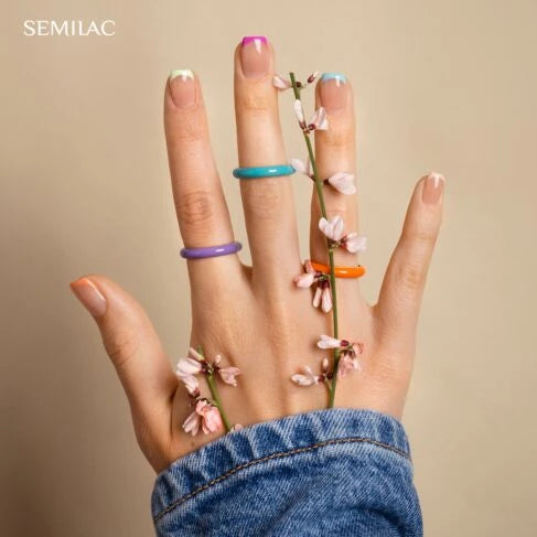 Semilac gēla lakas ir inovatīvi produkti, kas apvieno klasisko laku vienkāršību ar gēla noturību. Manikīrs, kas izgatavots ar Semilac gēla lakām, ir noturīgs, izturīgs pret bojājumiem un iešķelšanos. Tas pārklāj nagus ar skaistu krāsu un spīdumu pat līdz 3 nedēļām. Tas ir lielisks risinājums visām sievietēm, kuras vēlas izskatīties un justies labi – neatkarīgi no apstākļiem. Turklāt UV gēla manikīrs arī mehāniski stiprina nagus un pasargā tos no bojājumiem, padarot tos mazāk uzņēmīgus pret lūšanu, kas arī ļauj izaudzēt garus nagus un izveidot skaistu, krāsainu dizainu.Vai ir kaut kas labāks par drēbēm, kas liek jums justies tā, it kā valkātu otru ādu? Jūs jutīsieties tāpat, satiekot šo dabisko, vēso smilškrāsas nokrāsu. Daļēji caurspīdīgais Second Skin Nude pielāgojas jums un vienmēr uzsver jūsu patieso skaistumu, veidos, kas parāda koptus nagus bez redzamas krāsas. Pārbaudi viņa prasmes ar tā dēvēto bez manis jeb franču manikīru.