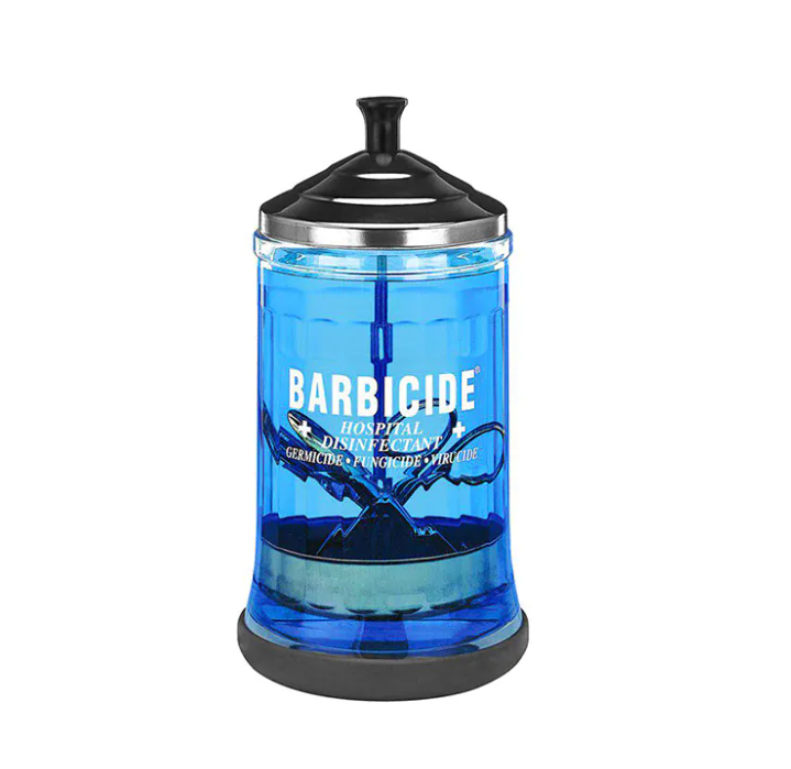 Ērts mazs konteiners ir lieliski piemērots mazu priekšmetu, piemēram, šķēru, knaibļu, uzgaļu, piemēram, mikrodermabrāzijas ierīču, griezēju dezinficēšanai. Tvertne ir izgatavota no augstas kvalitātes stikla, kas ir izturīgs pret ķīmiskiem biocīdiem preparātiem. Raksturīgais BARBICĪDU trauks ar caurspīdīgu zilu dezinfekcijas šķidrumu ir profesionāla un kvalitatīva biroja simbols. Barbicide konteiners ir pazīstams skaistumkopšanas salonos un frizētavās visā pasaulē. Barbicide šķīduma estētiskais trauks un patīkamā smarža mudina profesionāļus bieži dezinficēt pat klienta klātbūtnē.