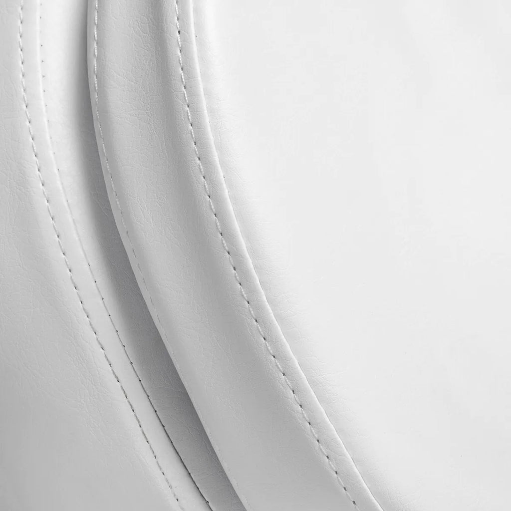 Krēsls ir pildīts ar profilētu putu materiālu un pārklāts ar patīkamu, matētu sintētisko ādu baltos toņos.