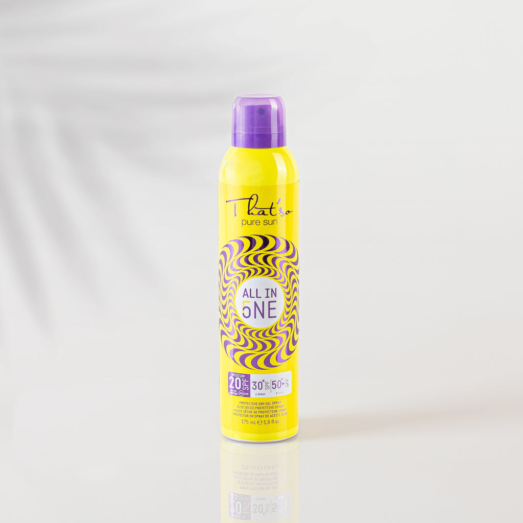 Inovatīvs aerosols uz sauso eļļu bāzes ar progresējošu SPF aizsardzību. Pateicoties PROGRESSIVE SPF tehnoloģijai, tas nodrošina 3 dažādus aizsardzības līmeņus vienā produkta uzklāšanā – SPF 20, SPF 30 un SPF 50+. Šis līdzeklis satur MELANUP+ komponentu, kas stimulē melanīna ražošanu, nodrošinot drošu un bagātīgu iedegumu bez UV staru palīdzības. TYR-EXCELT aktivators piešķir sauļošanās īpašu skaistumu, uzlabojot iedegumu.