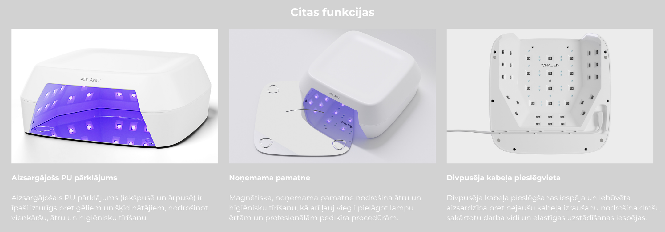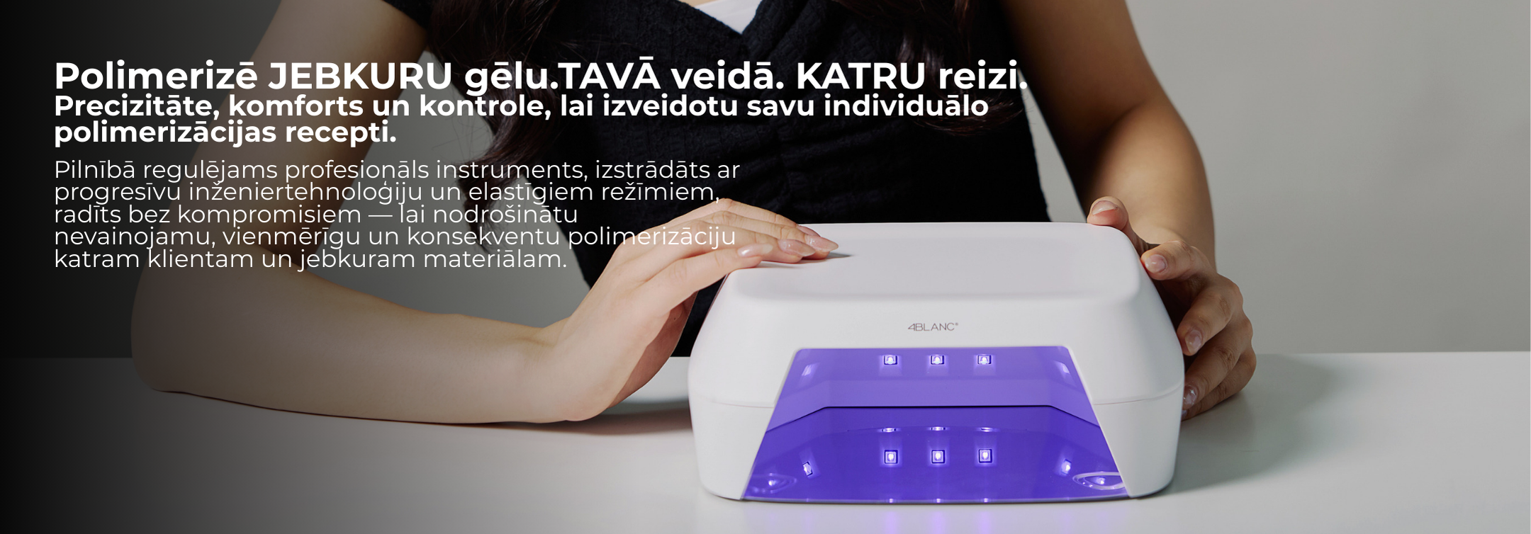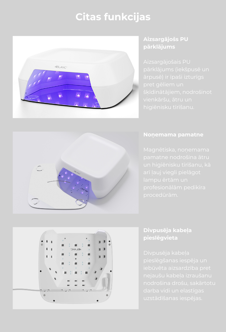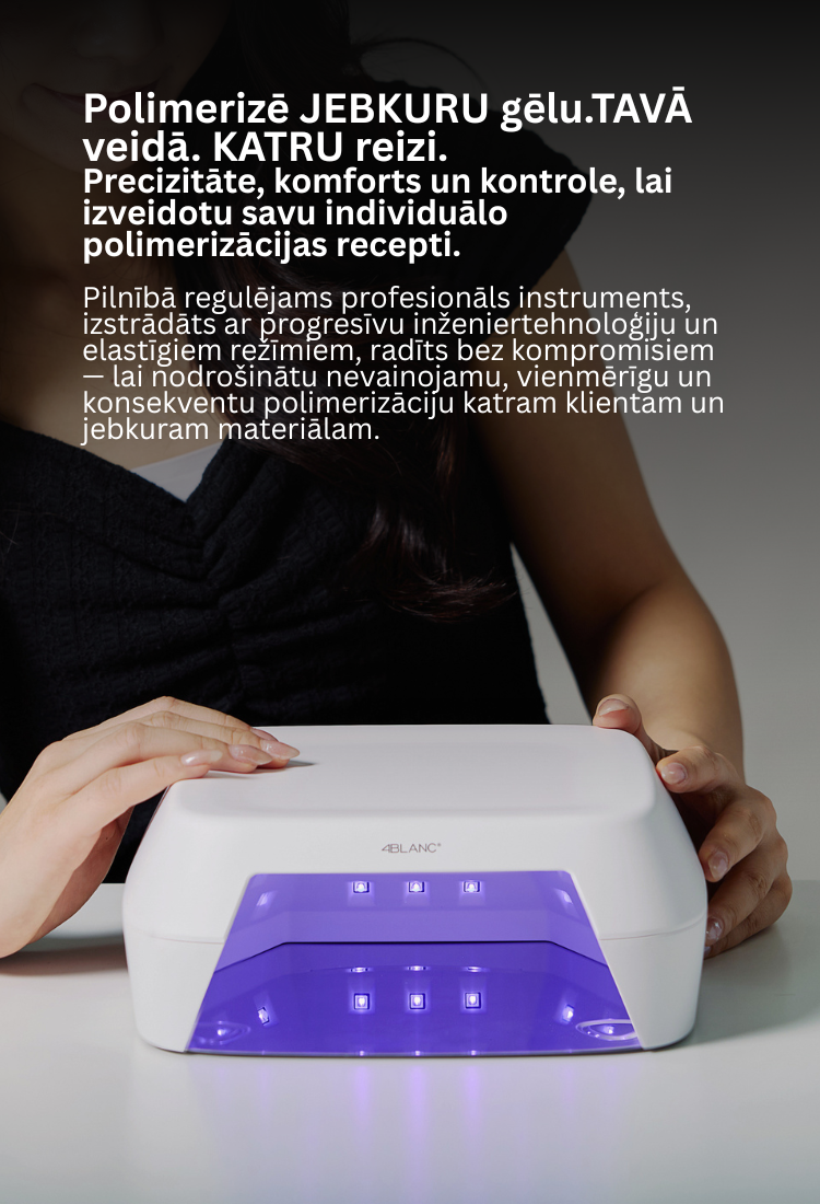 4BLANC Smart on juhtmega UV/LED-lamp, mis on mõeldud nii professionaalseks kui ka koduseks kasutamiseks, tagades kiire ja ühtlase kõigi geellakkide polümerisatsiooni. Lamp on varustatud Pure Gold Wire tehnoloogiaga, mis tagab seadme kogu kasutusaja jooksul stabiilse ja muutumatu valgusvõimsuse.