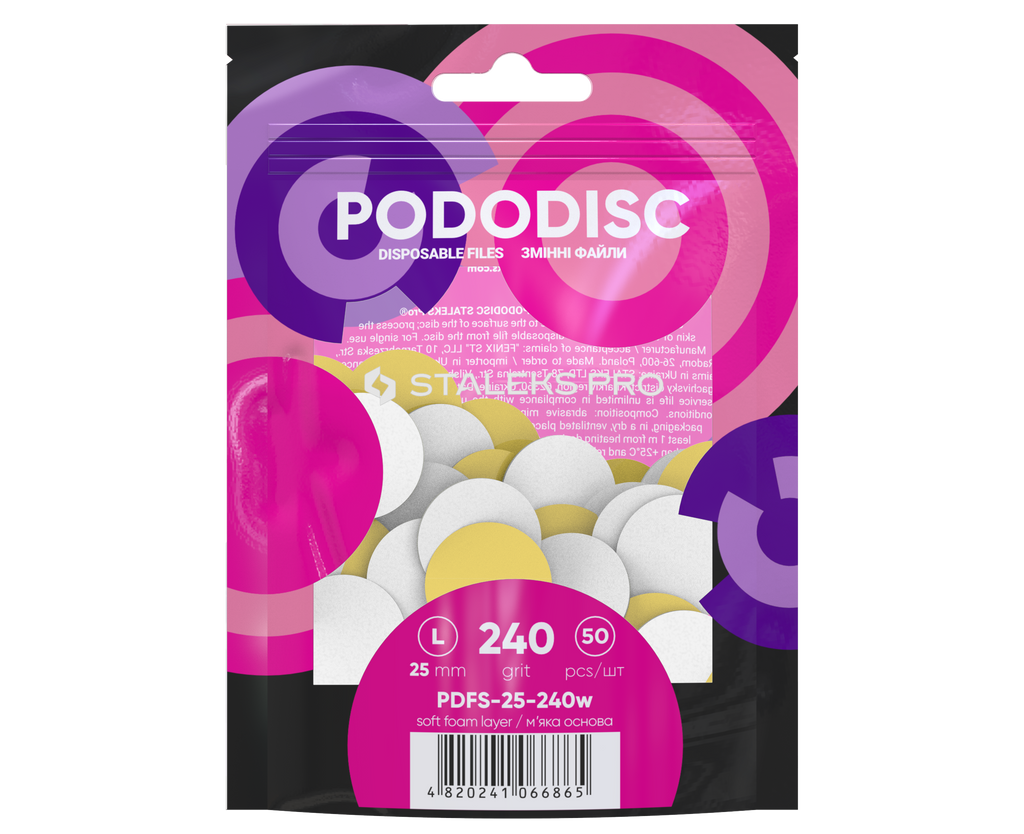 STALEKS Vahetatavad failid pehme alusega pediküüri kettale L 240 liivateraga, valge (50 tk)[PDFS-25-240W]