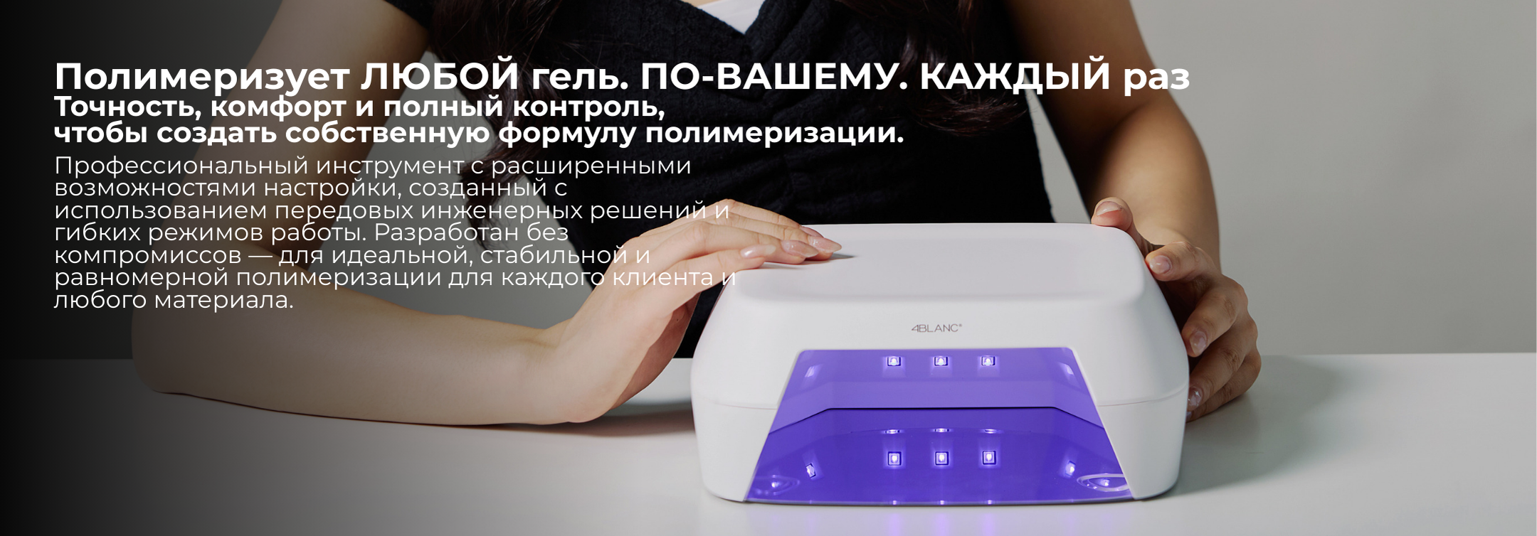 4BLANC Smart — это высококачественная беспроводная UV/LED лампа, обеспечивающая салонный результат как для профессионального, так и для домашнего использования. Благодаря технологии Pure Gold Wire, лампа обеспечивает стабильный и равномерный свет на протяжении всего срока службы, гарантируя надёжную полимеризацию всех гелей и гель-лаков.