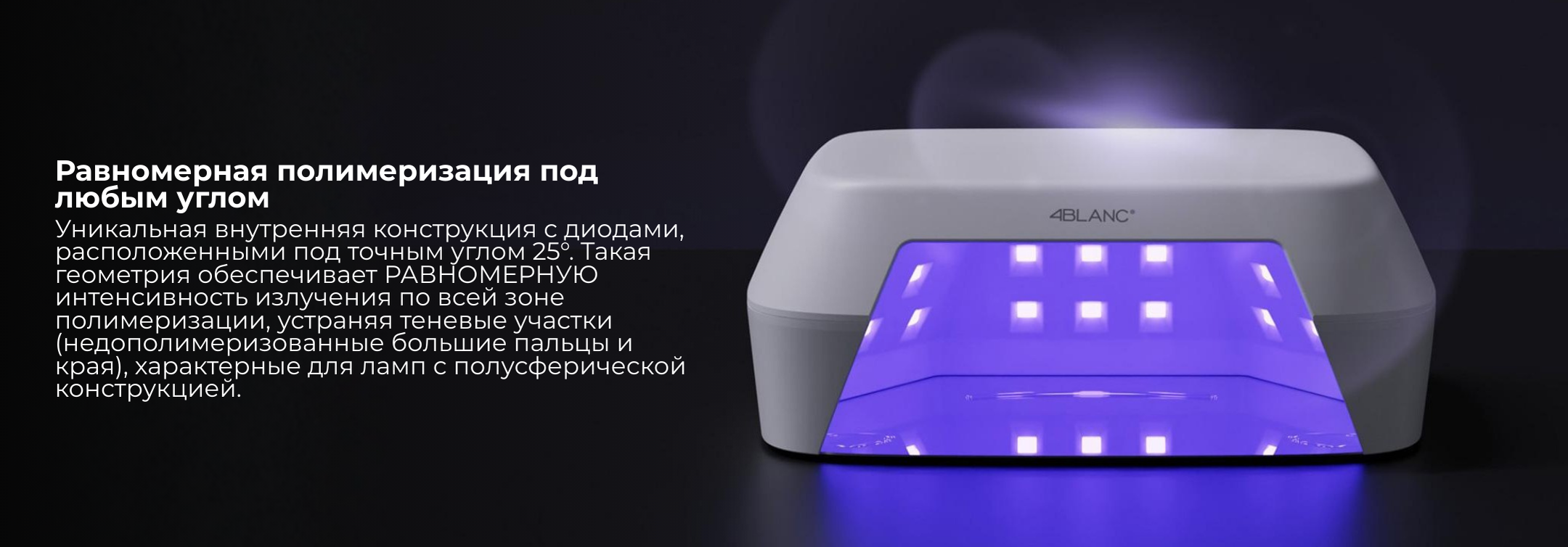 ✔ Равномерная полимеризация со всех сторон — 36 LED-диодов, расположенных под оптимальными углами, обеспечивают полное покрытие всех ногтей рук и ног