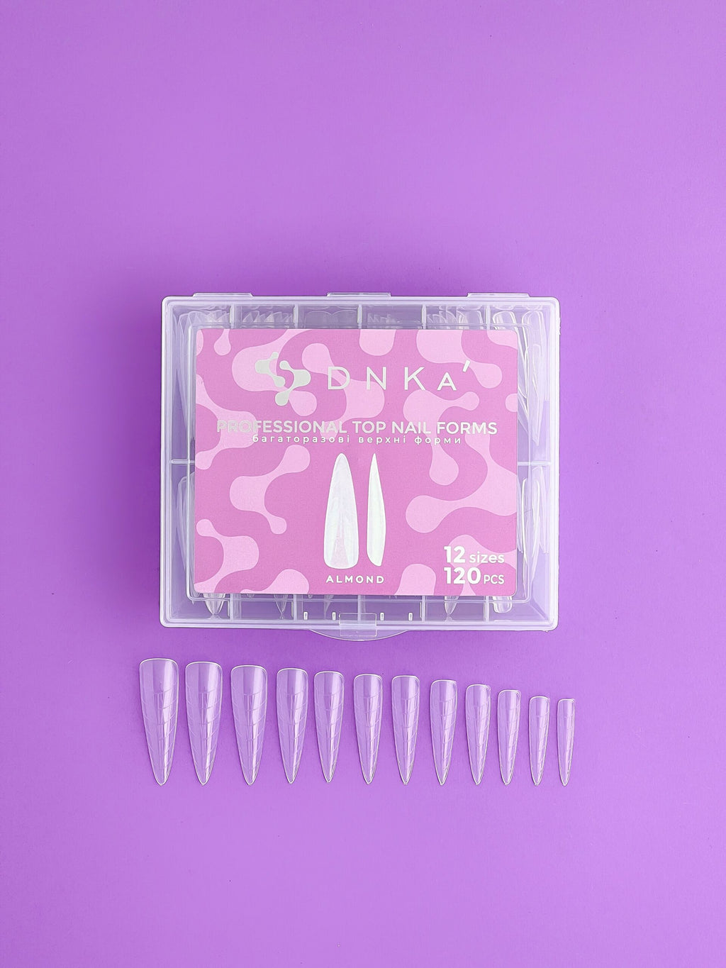 Салонные формы ALMOND подходят для создания длинных миндалевидных ногтей, а также позволяют выполнять наращивание, укрепление и коррекцию ногтей любой длины.